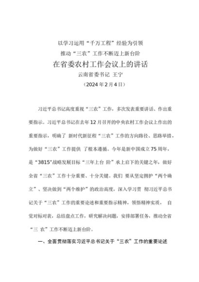 / 领导讲话:20240204在省委农村工作会议上的讲话——云南省委书记 王宁