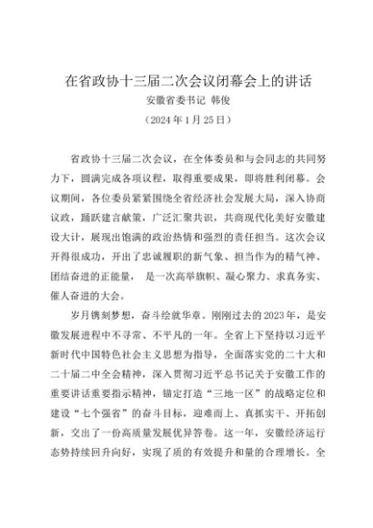 / 领导讲话:20240125在省政协十三届二次会议闭幕会上的讲话——安徽省委书记 韩俊