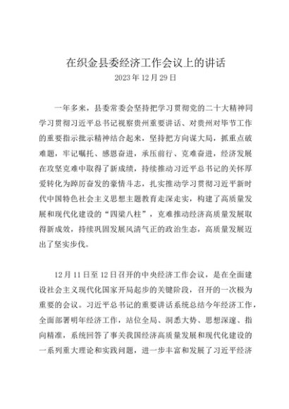 / 领导讲话:20231229(经济工作会议)在织金县委经济工作会议上的讲话