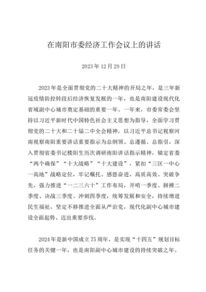 / 领导讲话:20231229(经济工作会议)在南阳市委经济工作会议上的讲话