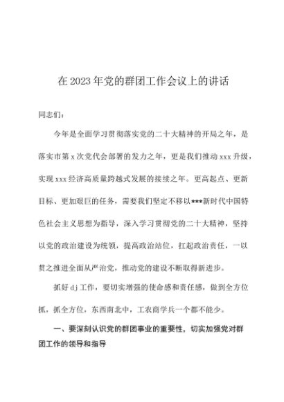 领导讲话:20231220(群团工作会议)在2023年党的群团工作会议上的讲话