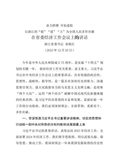 / 领导讲话:20231220(经济工作会议)在省委经济工作会议上的讲话——浙江省委书记 易炼红