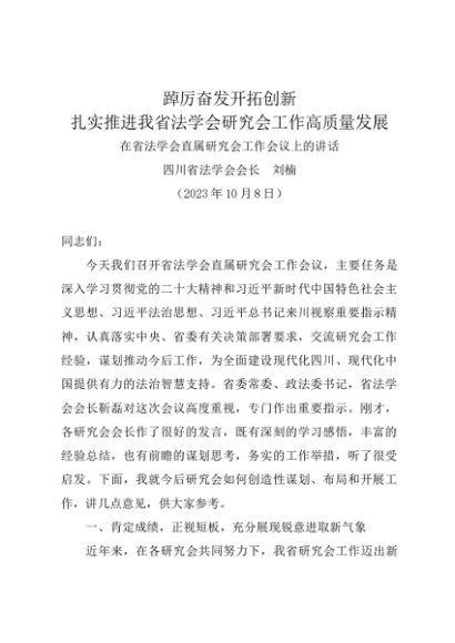 / 领导讲话:20231008四川省法学会会长:在省法学会直属研究会工作会议上的讲话(法治思想)
