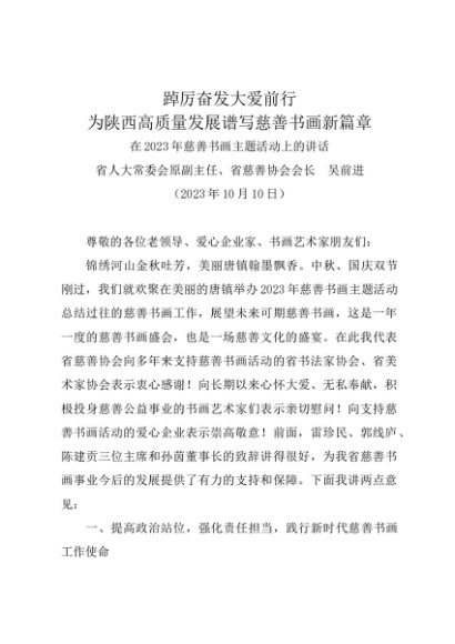 / 领导讲话:20231010省慈善协会会长:在2023年慈善书画主题活动上的讲话