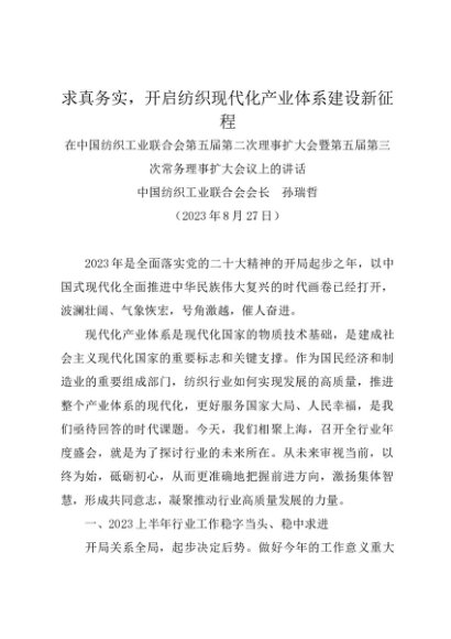 / 领导讲话:20230927在中国纺织工业联合会常务理事扩大会议上的讲话——会长 孙瑞哲