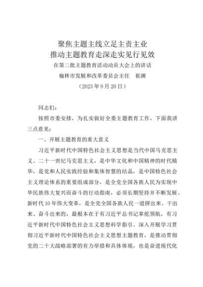 / 领导讲话:20230920(主题教育动员)在第二批主题教育活动动员大会上的讲话——榆林市发展和改革委员会主任 崔渊