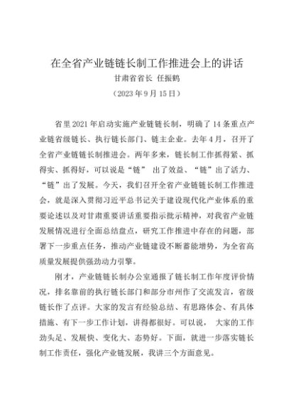 / 领导讲话:20230915(产业链链长制工作推进会)在全省产业链链长制工作推进会上的讲话——甘肃省省长 任振鹤
