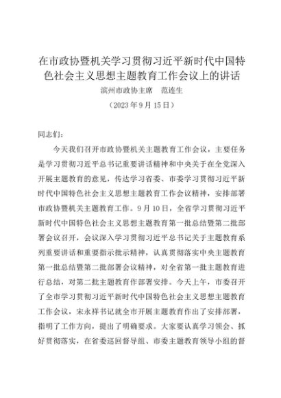 / 领导讲话:20230915滨州市政协主席:在市政协暨机关学习贯彻习近平新时代中国特色社会主义思想主题教育工作会议上的讲话