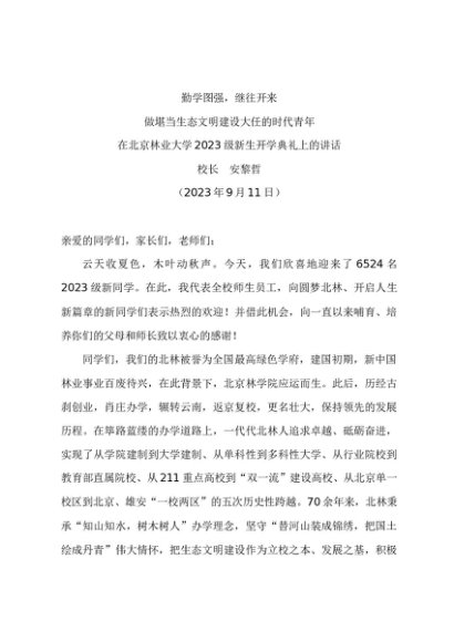 / 领导讲话:20230911在北京林业大学2023级新生开学典礼上的讲话——校长 安黎哲