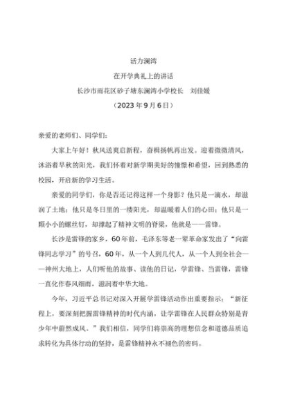 领导讲话:20230906在开学典礼上的讲话——长沙市小学校长 刘佳媛