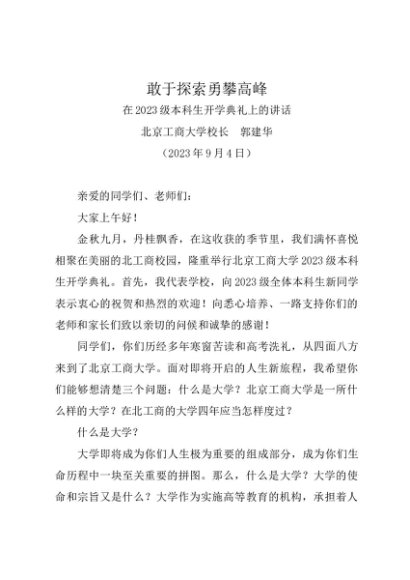 / 领导讲话:20230904在2023级本科生开学典礼上的讲话——北京工商大学校长 郭建华