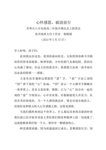 / 领导讲话:20230517心怀感恩,破浪前行(高二)