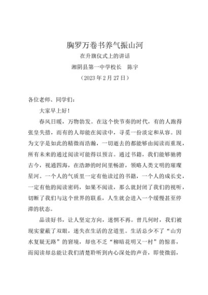 领导讲话:20230202在2023年春季开学第一次升旗仪式上的讲话——校长 蒋伟勇