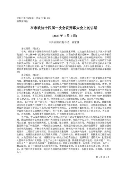 / 领导讲话:20230104中共安阳市委书记袁家健:在市政协十四届一次会议开幕大会上的讲话