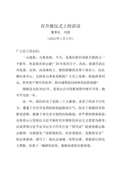 / 领导讲话:20230101在企业升旗仪式上的讲话——董事长 刘波