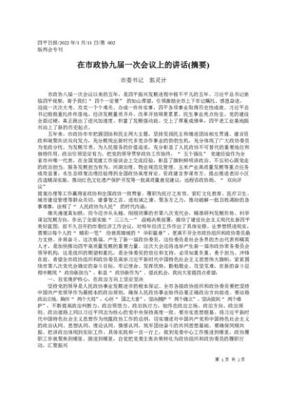 / 领导讲话:20220111市委书记郭灵计:在市政协九届一次会议上的讲话(摘要)