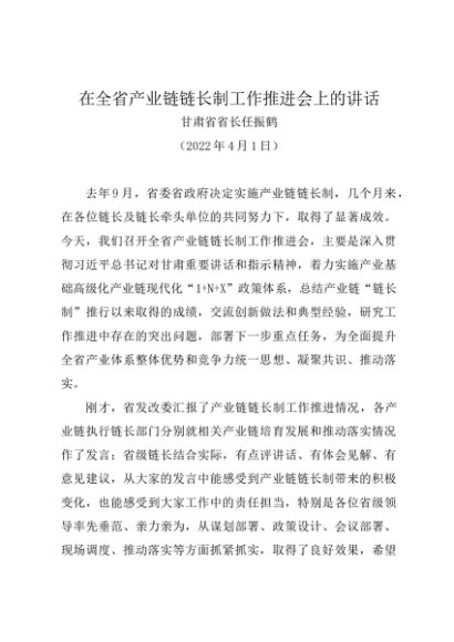 领导讲话:20220401(产业链链长制工作推进会)在全省产业链链长制工作推进会上的讲话——甘肃省省长任振鹤