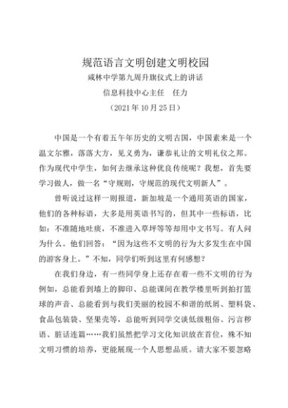 / 领导讲话:20211025规范语言文明创建文明校园——咸林中学第九周升旗仪式上的讲话