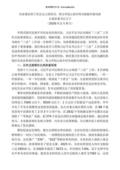/ 领导讲话:20260315云南省委书记王宁:在省委农村工作会议上的讲话