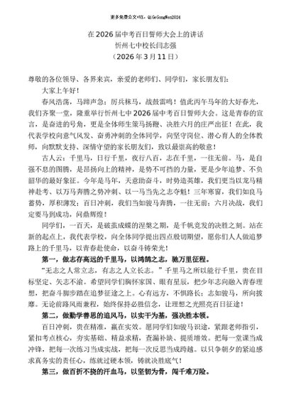 / 领导讲话:20260315忻州七中校长闫志强:在2026届中考百日誓师大会上的讲话