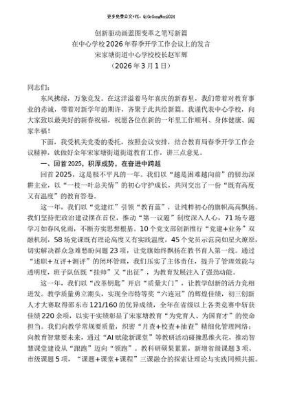 / 领导讲话:20260315宋家塘街道中心学校校长赵军辉:在2026年春季开学工作会议上的发言