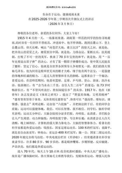 / 领导讲话:20260315在2025-2026学年第二学期首次升旗仪式上的讲话
