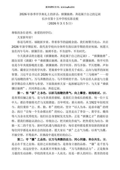 / 领导讲话:20260315长沙市第十五中学校长陈良根:2026年春季开学典礼上的讲话