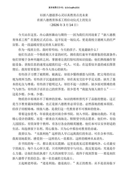 领导讲话:20260315在新八德教育体系工程启动仪式上的发言:以新八德滋养心灵以真教育点亮未来