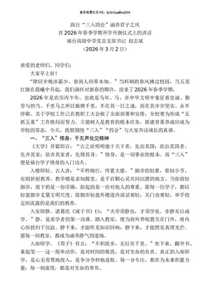 / 领导讲话:20260315在2026年春季学期开学升旗仪式上的讲话