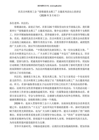 / 领导讲话:20260315在昌吉州教育工会“致敬最美女教工”主题系列活动上的讲话