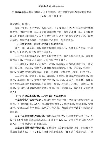 / 领导讲话:20260315在2026年新学期全体教师大会上的讲话
