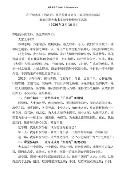 / 领导讲话:20260315石家庄阳光未来实验学校校长王志强:在开学典礼上的讲话