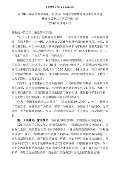 / 领导讲话:20260315株洲市第十三中学孟祥忠书记:在2026年春季开学典礼上的讲话