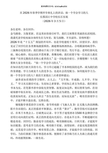 / 领导讲话:20260315长郡滨江中学校长石东妮:在2026年春季学期开学典礼上的讲话