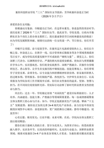 / 领导讲话:20260315襄阳科技职业学院“三八”国际妇女节致辞