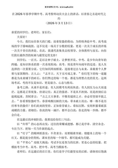 / 领导讲话:20260315在2026年春季学期中考、高考誓师动员大会上的讲话