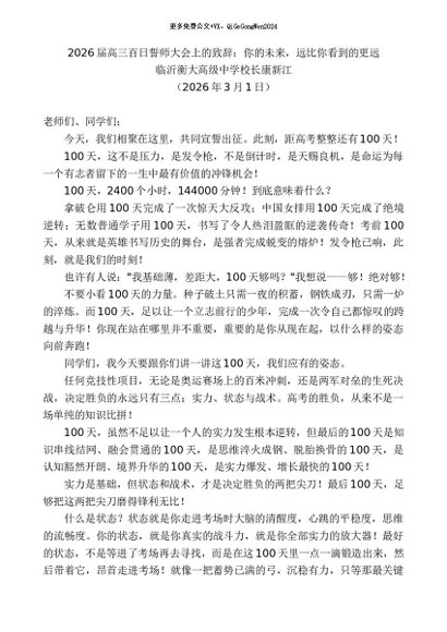 / 领导讲话:20260315临沂衡大高级中学校长康新江:2026届高三百日誓师大会上的致辞