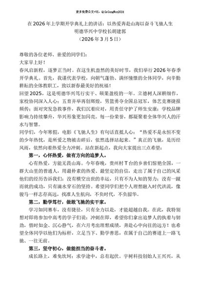 / 领导讲话:20260315明德华兴中学校长胡建郭:在2026年上学期开学典礼上的讲话