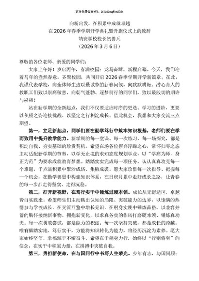 / 领导讲话:20260315在2026年春季学期开学典礼暨升旗仪式上的致辞