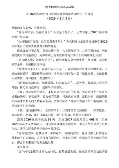 / 领导讲话:20260315在2026届师生百日誓师大典暨烟花燃放晚会上的讲话