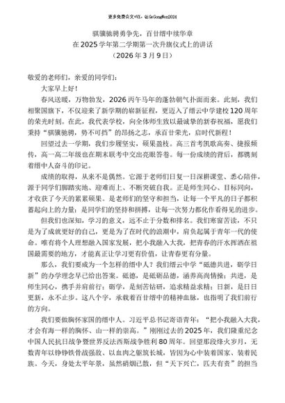 / 领导讲话:20260315在2025学年第二学期第一次升旗仪式上的讲话