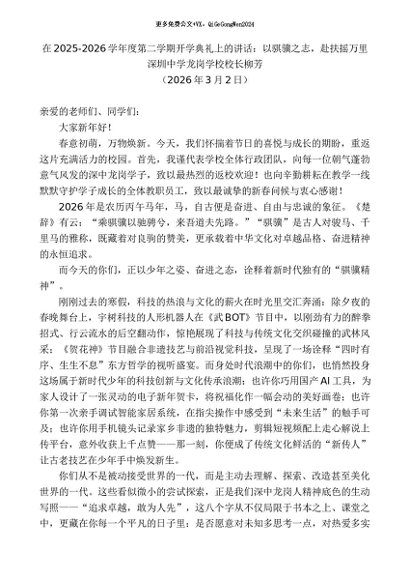 / 领导讲话:20260315深圳中学龙岗学校校长柳芳:在2025-2026学年度第二学期开学典礼上的讲话