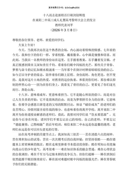 / 领导讲话:20260315在耒阳二中高三成人礼暨高考誓师大会上的发言