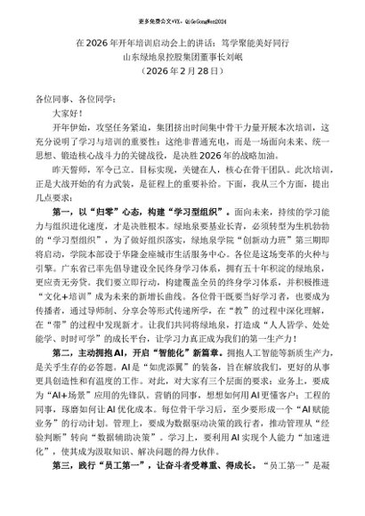 / 领导讲话:20260315山东绿地泉控股集团董事长刘岷:在2026年开年培训启动会上的讲话