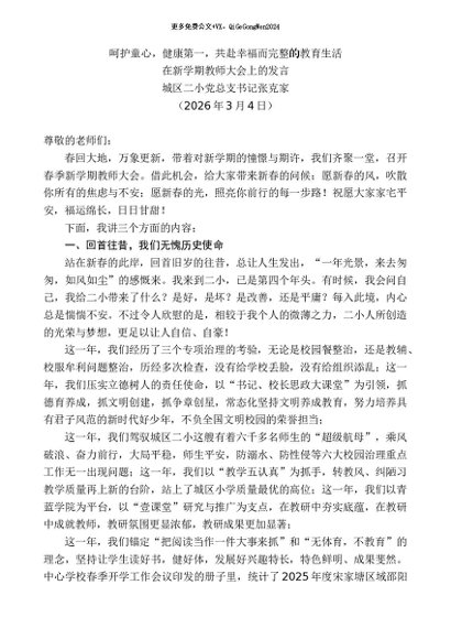 / 领导讲话:20260315在新学期教师大会上的发言