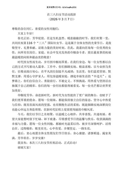 / 领导讲话:20260315在三八妇女节活动致辞