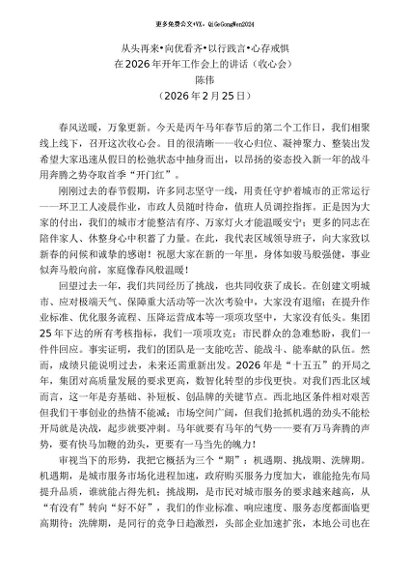 / 领导讲话:20260228陈伟:在2026年开年工作会上的讲话(收心会)