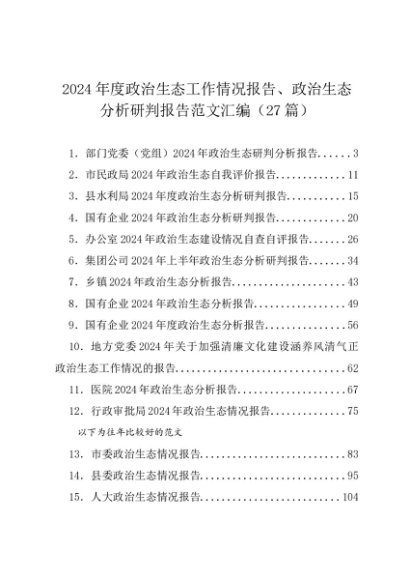 / 2024年度总结∣政治生态:2024年度政治生态工作情况报告、政治生态分析研判报告范文汇编(27篇)