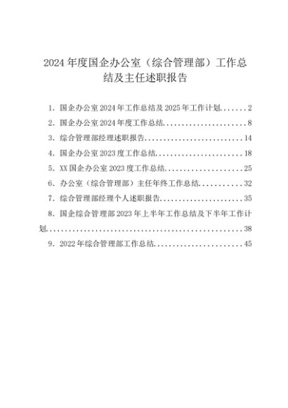 / 2024年度总结∣国企办公室工作:2024年度国企办公室(综合管理部)工作总结及主任述职报告(9篇)
