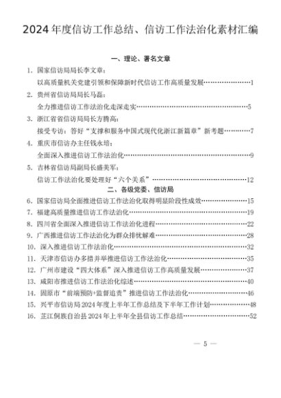 / 2024年度总结∣信访工作:2024年度信访工作总结、信访工作法治化素材汇编(53篇)